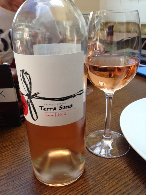 As it was a hot day we opted for a bottle of the Terra Sana Organic Rose 2012 (£23.10) http://www.francoislurton.com/en/nos-domaines/france-domaine-francois-lurton/terra-sana/terra-sana-rose/ which was so good it should have a review of its own. A light pink wine made from hand-picked grapes with an intense nose with notes of fresh fruit, redcurrants and hazelnuts; full and perfectly balanced in the mouth. The finish is dominated by strawberries and raspberries, yet still dry enough to perfectly compliment the rich food.