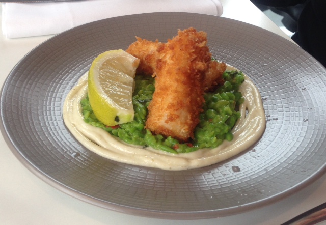 Delicious haddock goujons with crushed peas