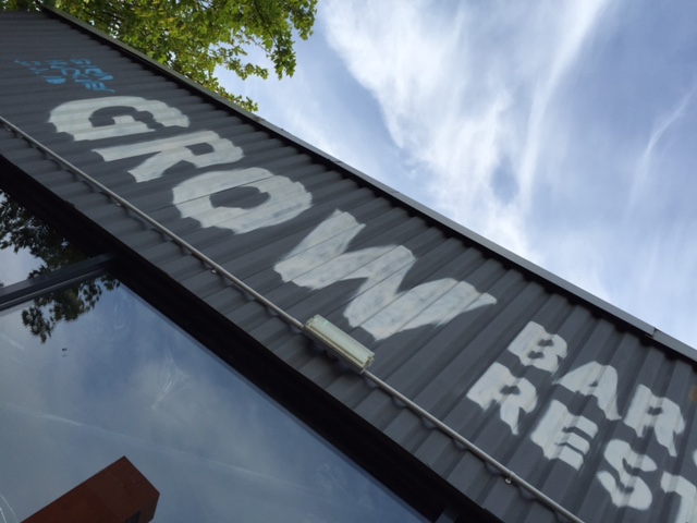 With my fenian thirst only partially quenched, and still only 5pm, I took the overground to Hackney Wick to visit London’s first 100% sustainable bar. It’s only a short walk from the station, passing the imposing Victorian warehouse housing Central Books, then a right turn through a few small business units then, finally down a narrow alley to reach the canal side bar Grow Hackney. I’d been promising manager Daniel Carruthers to pop in for a good 8 months so and seemed pleasantly surprised I’d actually managed to do it.